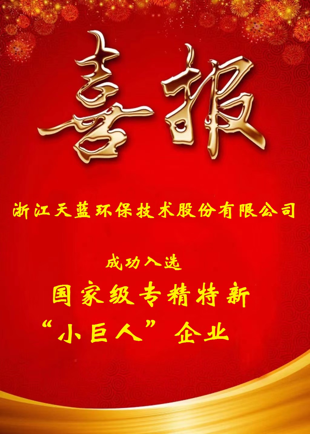 近日,浙江省經(jīng)濟和信息化廳發(fā)布了《關(guān)于浙江省第四批專精特新“小巨人”企業(yè)和第一批專精特新“小巨人”復(fù)核通過企業(yè)名單的公示》,天藍環(huán)保憑借在大氣污染治理領(lǐng)域的技術(shù)創(chuàng)新綜合實力和市場占有率,成功入選國家級專精特新“小巨人”企業(yè)名單。
